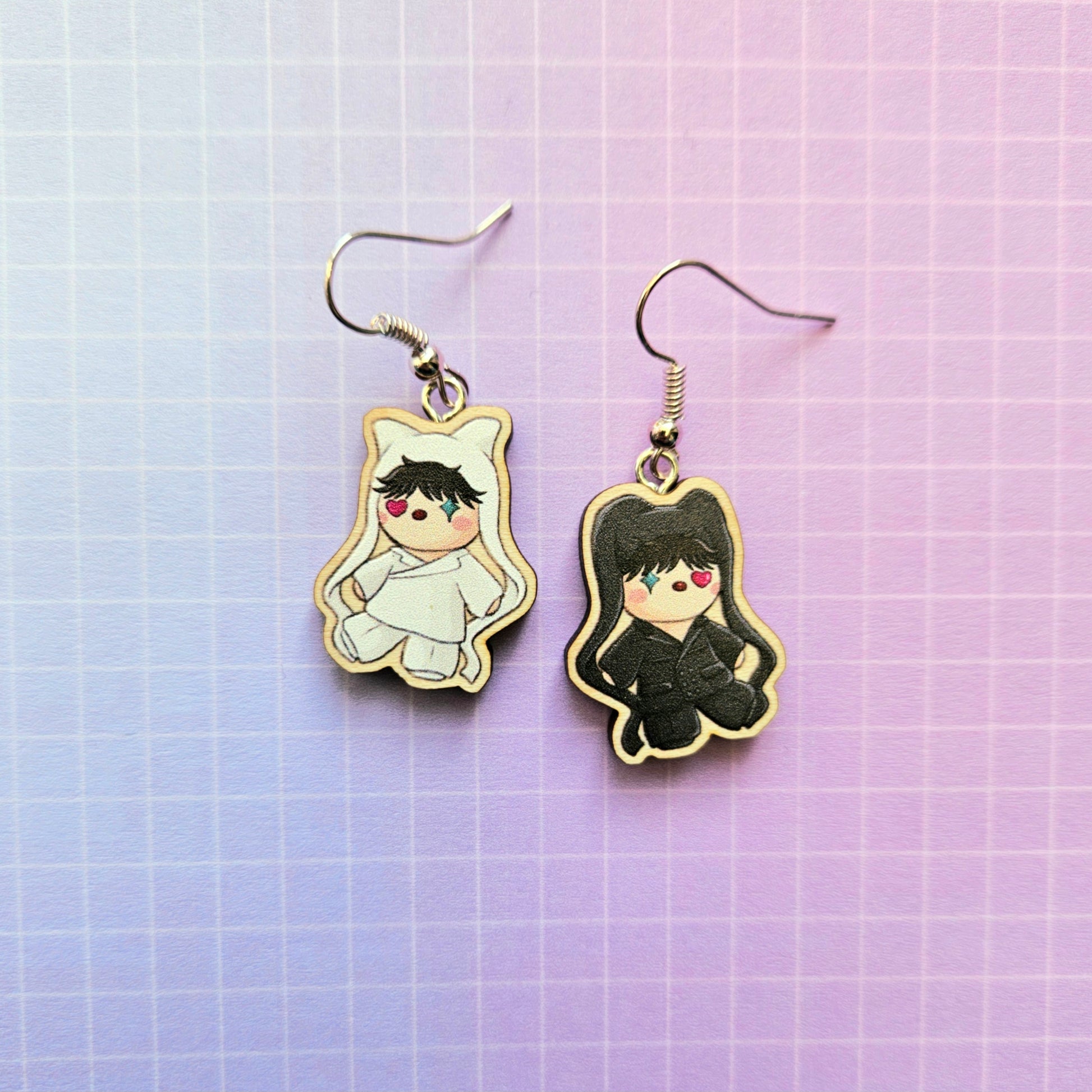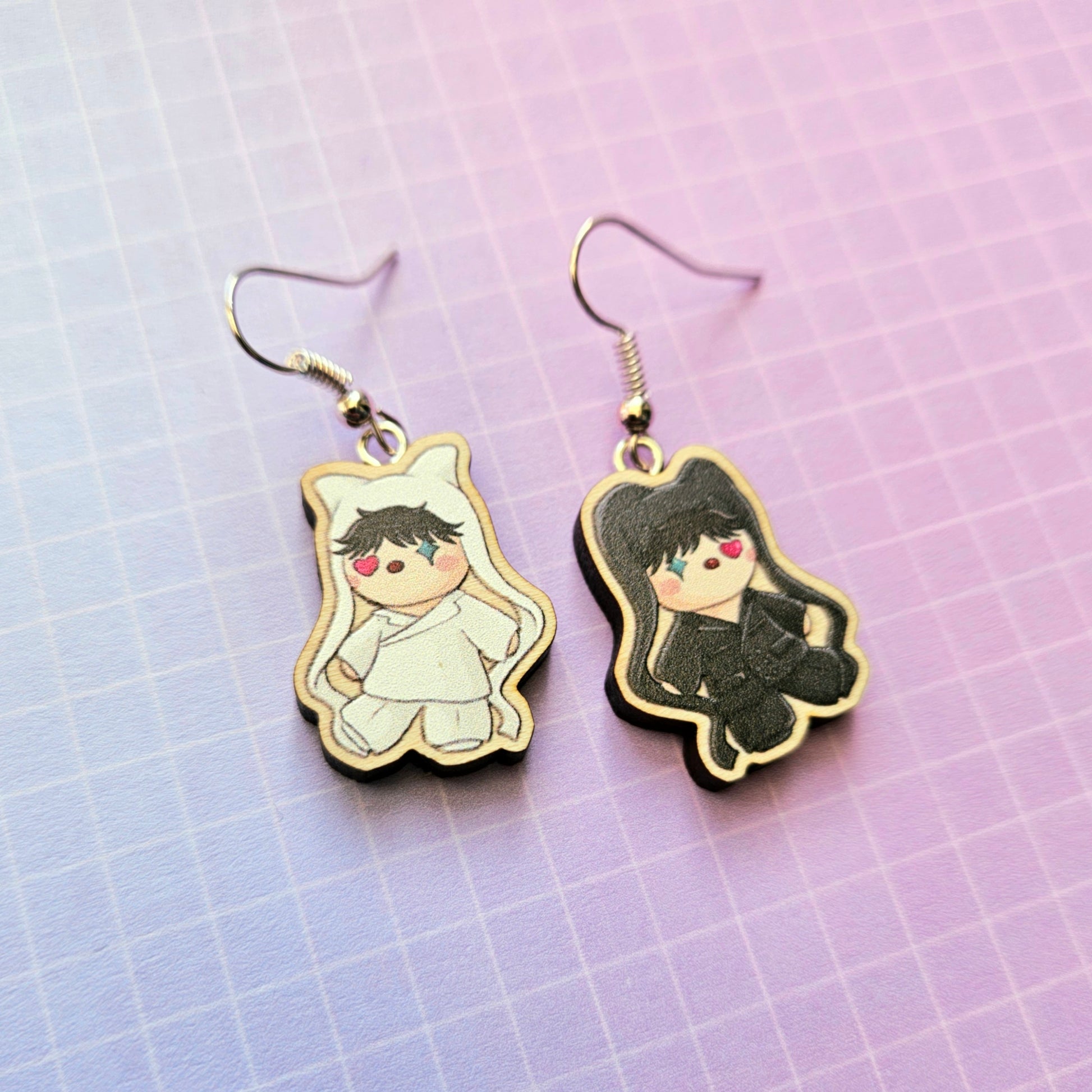 A pair of drop earrings made from two Eco Friendly Wooden charms measuring 1 Inch at that longest, and attached to silver plated earring hooks. The charms are lightweight 💜