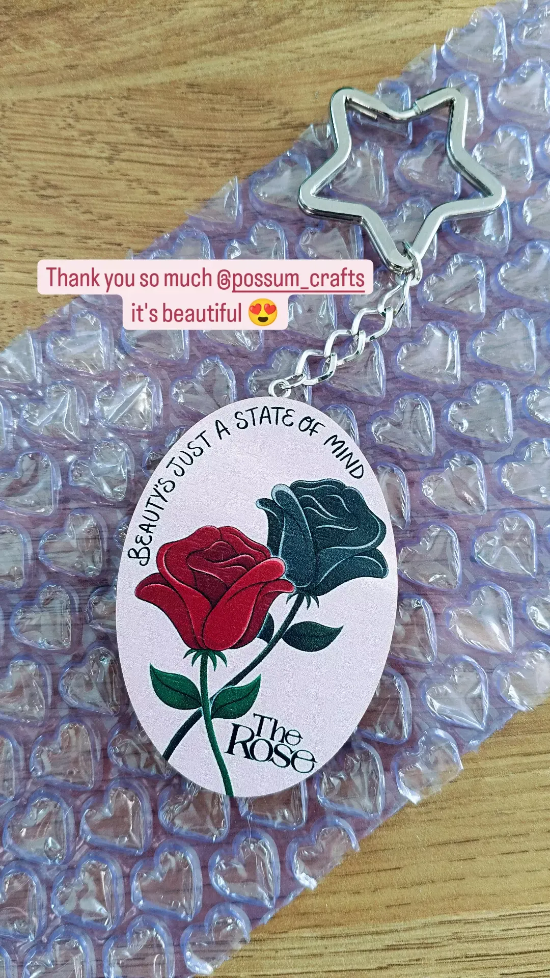 Eco Friendly Wooden 2.5 Inch Pin or Keyring - The Rose You're Beautiful