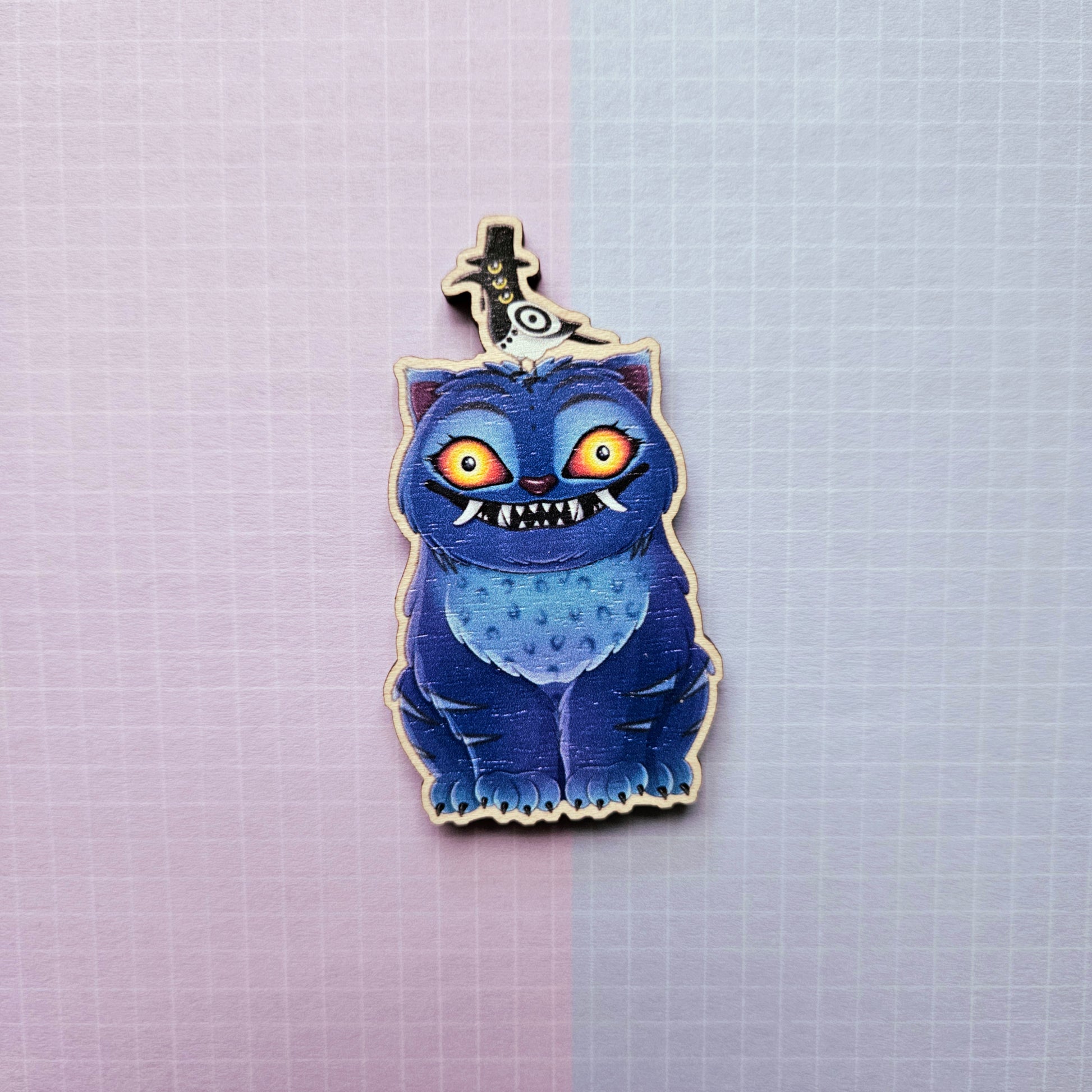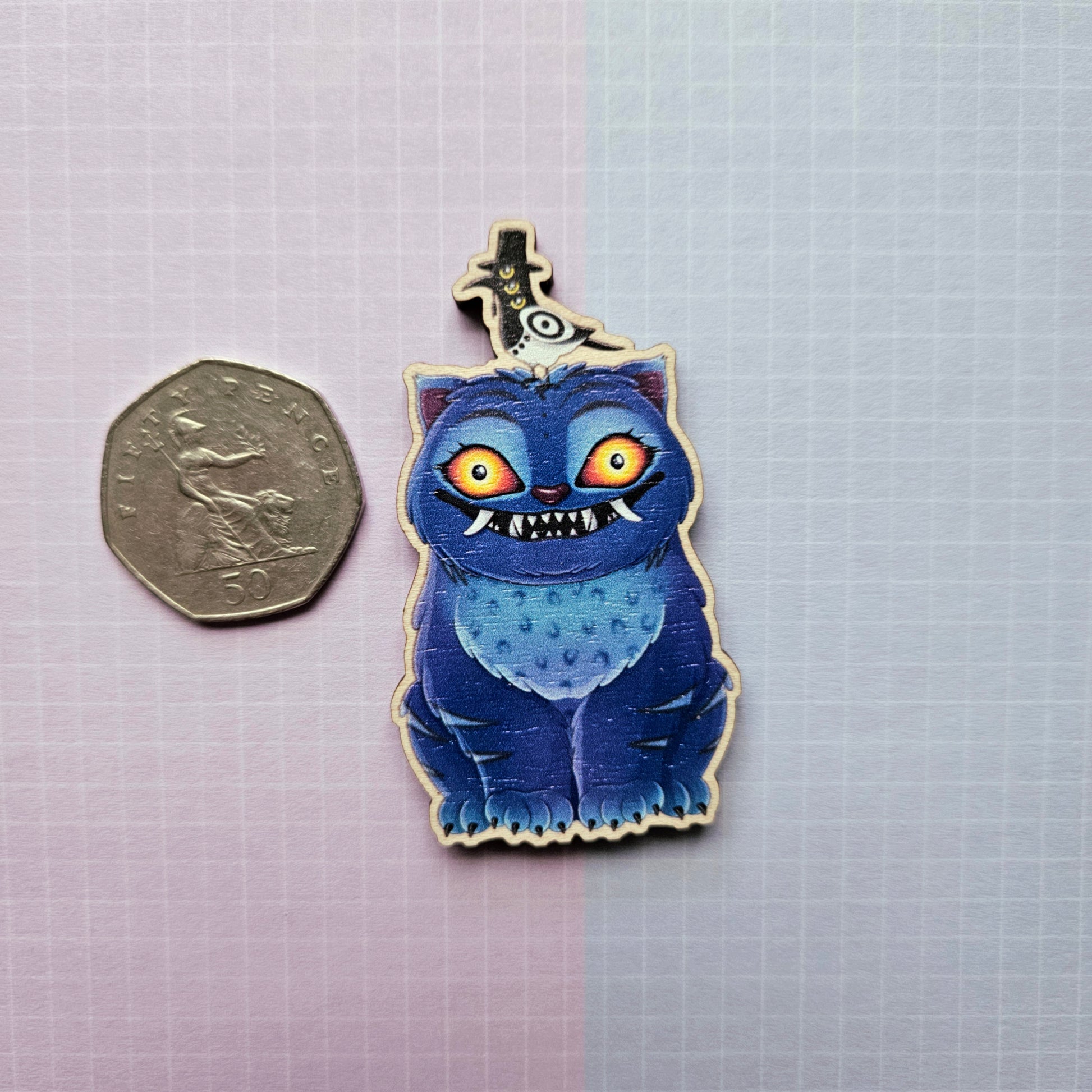 Artwork created by myself professionally printed onto an eco friendly wooden charm, made from responsibly sourced birch wood.