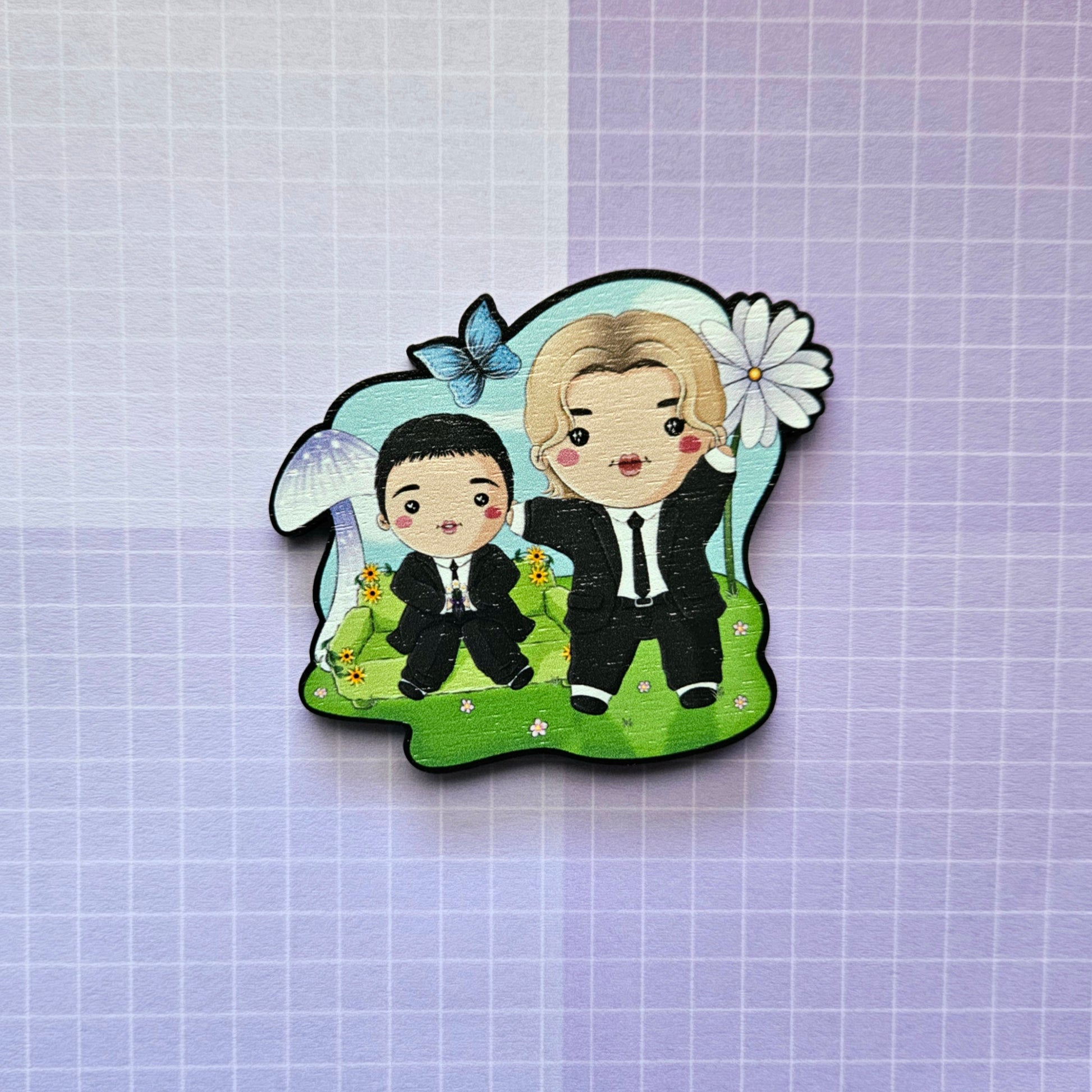 Eco Friendly Wooden 2.5 Inch Pin - Smeraldo Garden Marching Band Jimin and Loco