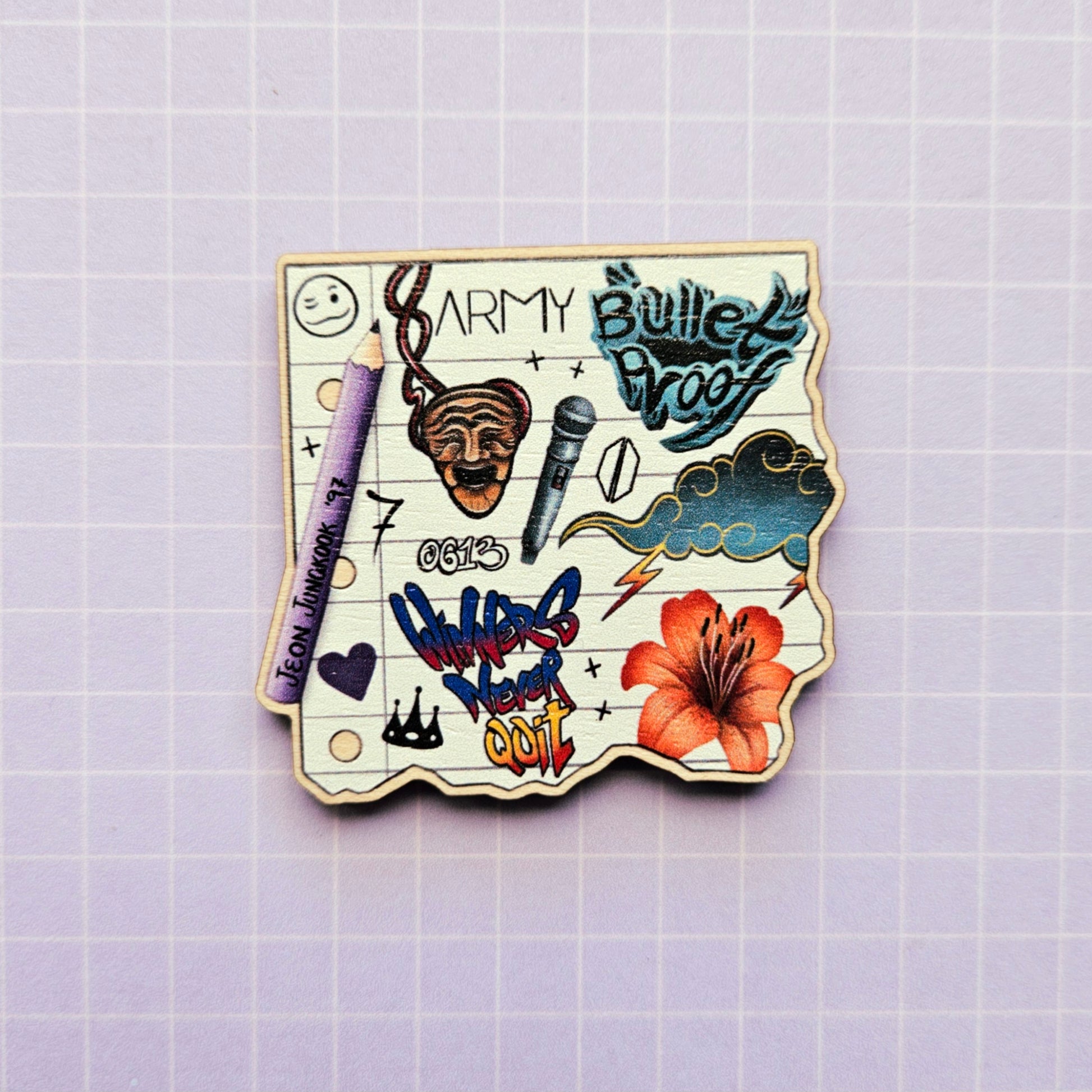 Eco Friendly Wooden 2 Inch Pin - Tattoo Notepad Jungkook JK